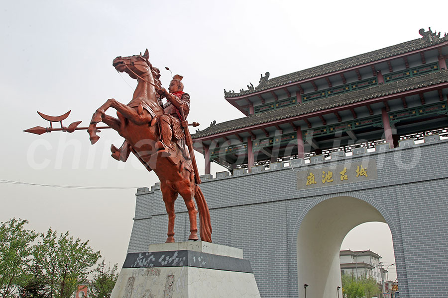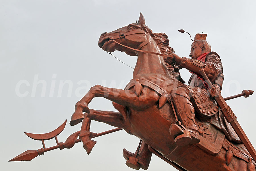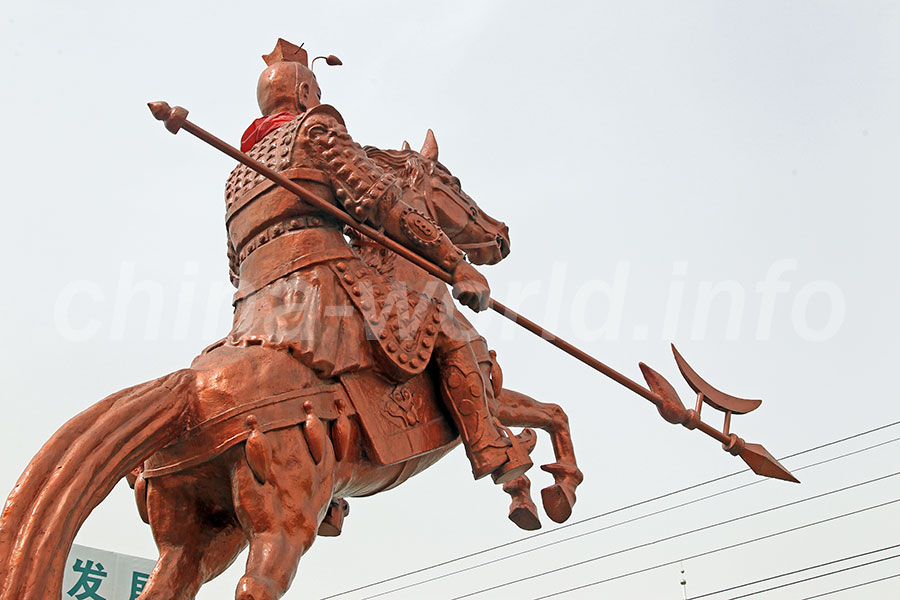 この場所はかなり前から知っていた。ただ中国を旅し始めてから20数年間、内蒙古自治区には来たことがなかったのだ。今回やっと意を決して訪れてみることにする。包頭に着いたのだが、ところどころに蒙古語の文字が見えるほかは、他の街とほとんど変わらない。とりあえず包頭火車站から市バスに乗って行くことにした。古城村の役場前でバスを降りる。本来ならこの場所に呂布像があったのだが、数年前に移設したらしい。呂布像の土台だけが残されていた。さて、呂布像はどこへ行ったのかな。バスの運転手に聞いてみると、すぐ近いところにあるそうだ。そこまで歩いていくと、ありました呂布像。造形もなかなかでいいじゃないですか。でも呂布の顔が優しすぎるかな。呂布故里を名乗るところは多く、実際にはどこが本物なのだろうか。