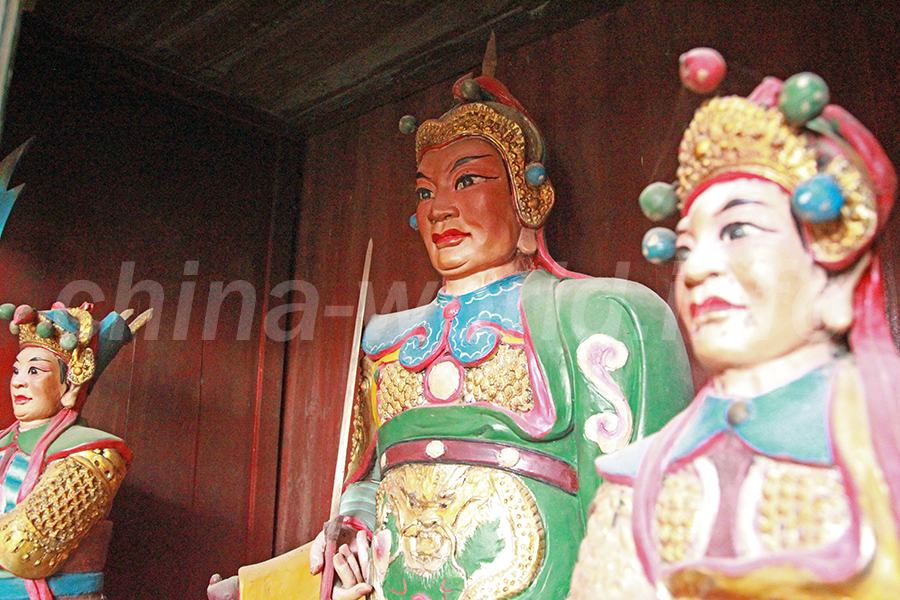 凛々しい感じがする呂蒙の像。 呂蒙像。右手に剣を携えている。従者は2人。 中央は玉帝、呂蒙はその右側に祭られている。玉帝の軍師だということだ。 興隆殿の戯台。呂蒙が祭られているので、関羽関連は「走麦城」のみ演じることが許される。 基本情報 【訪問時期】2018年12月31日 【関連人物】呂蒙 【文物保護】– ちょこっと解説 呂蒙、字は子明。豫州汝南郡富陂県(現在の安徽省阜陽市)の人。 探訪後記 関連遺址 呂蒙公王廟[ 建瓯 ] 位置情報 在野の士であるあなたはこの位置情報を閲覧できません。仕官申請しますか。 投稿情報【カテゴリ】福建省 建甌市【 タグ 】呂蒙【公開範囲】都督 大将軍 丞相【掲載日時】2019年1月26日 17:54【更新日時】2019年1月26日 17:57 いいね! 247