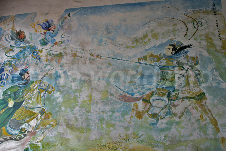近年開発が進み、公園のように整備されている。 清雍正元年(西暦1723年)の石碑。「虎牢関」と刻まれている。 2005年の虎牢関。まだまだ農村の一角という雰囲気だった。 石碑後方にある山西夫子廟。山西夫子は関羽のこと。 山西夫子廟内。三義廟だったが関羽だけが祭られている。 山西夫子廟内、三英戦呂布の画。 基本情報 【訪問時期】2005年11月20日 / 2008年6月20日 / 2013年4月1日 【関連人物】張飛 劉備 呂布 関羽 華雄 【文物保護】– ちょこっと解説 探訪後記 位置情報 在野の士であるあなたはこの位置情報を閲覧できません。仕官申請しますか。 投稿情報【カテゴリ】河南省 滎陽市【 タグ 】張飛 劉備 呂布 関羽 華雄【公開範囲】校尉 都督 大将軍 丞相【掲載日時】2017年7月1日 20:29【更新日時】2019年1月13日 08:35 いいね! 492
