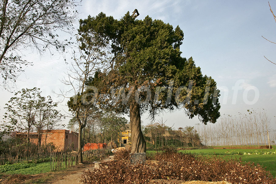 劉関張が馬をつないだと言われる柏。なぜか松と桧も枝を出し、三姓柏と呼ばれる。