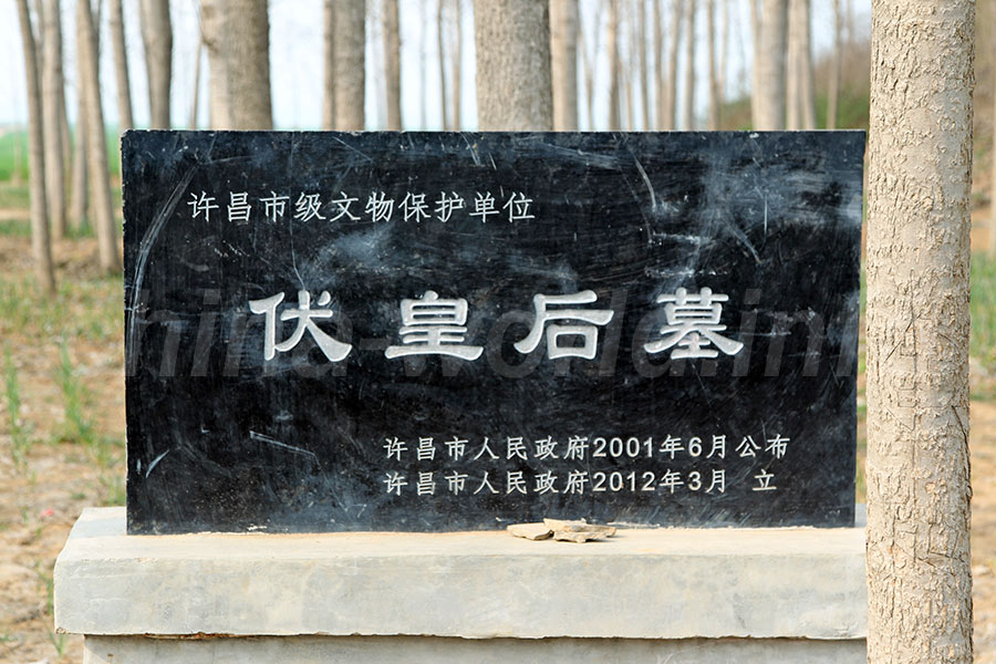 周囲の植林によってわかりづらいが、大きな封土が残る。 墓前には小さな祠が建てられている。 祠内部には、伏皇后と思われる女性の像が祭られている。 文物碑: 2001年6月公布 許昌市級文物保護単位「伏皇后墓」 基本情報 【訪問時期】2005年11月13日 / 2008年6月7日 / 2013年4月3日 【関連人物】伏寿 【文物保護】2001年6月公布 許昌市級文物保護単位「伏皇后墓」 ちょこっと解説 探訪後記 位置情報 在野の士であるあなたはこの位置情報を閲覧できません。仕官申請しますか。 投稿情報【カテゴリ】河南省 許昌市【 タグ 】伏寿【公開範囲】校尉 都督 大将軍 丞相【掲載日時】2017年11月26日 20:28【更新日時】2019年1月13日 08:45 いいね! 389