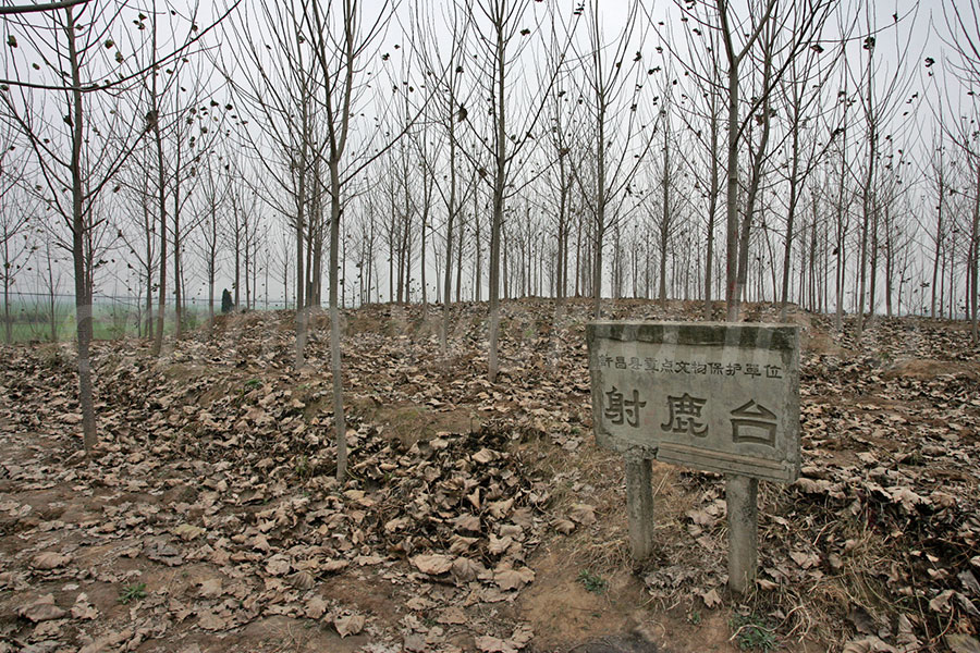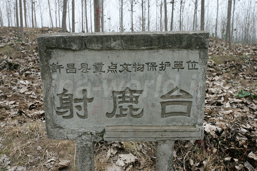 射鹿台の台上。ここで漢献帝による御狩が行われたとされる。 射鹿台は小高い台状の地形となっている。 文物碑: 許昌県重点文物保護単位「射鹿台」 基本情報 【訪問時期】2005年11月13日 / 2008年6月6日 【関連人物】曹操 関羽 劉協 【文物保護】2011年6月公布 許昌市級文物保護単位「射鹿台遺址」 ちょこっと解説 探訪後記 位置情報 在野の士であるあなたはこの位置情報を閲覧できません。仕官申請しますか。 投稿情報【カテゴリ】河南省 許昌市【 タグ 】曹操 関羽 劉協【公開範囲】校尉 都督 大将軍 丞相【掲載日時】2018年8月14日 20:43【更新日時】2019年1月13日 08:47 いいね! 306