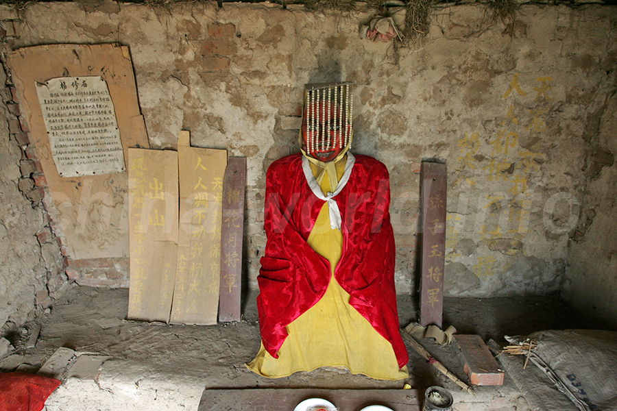 何とか台という遺跡はけっこう怪しいモノが多いのだが、ここはかなりはっきりとした台地が残っていて、なかなか見応えがある。台の上には楊修廟がある。とは言ってもかなり小さな祠なのだが。中には顔が真っ赤な楊修像があり、不気味だ。写真を撮っていると、ここを管理しているじいさまに呼び止められた。台上にある小屋に招かれ、いろいろ質問される。「なぜここを知っているんだ」と聞かれ、「ここは曹操練兵台でしょう。許昌の地図にも載っているし」と答える。するとじいさまの語気が荒くなる。「いいや、ここは劉邦の場所だ。曹操なんか関係ない。曹操は楊修を殺した悪いやつだ」と言う。かなり曹操のことが嫌いらしい。それはいいとしてもなぜに劉邦が出てくるんだ…。このじいさまの名前は聞いていないが、楊さんなのか。まあ、こうやっていろいろ話が大きくなって民間伝承になっていくのだろう。