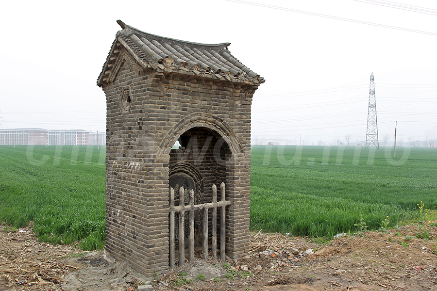 この碑のことは以前から知っていたのだが、いったい南陽のどこにあるのかが分からなかった。やっとネットで独山村にあるという情報をつかんだので、行ってみることにした。独山村に着いた後、人民に聞き込みをしてみるのだが誰も知らない。村をグルグルと回るがそれらしい碑が見あたらなかった。う~ん、おかしいな。ダメ元でまた人民に聞いてみると「あっちの方だ」と言われる。もうちょっと具体的に教えてくれよ。そして近くまで来たようで、農作業をしていた人民に聞いて、やっと発見。どうもここは独山村ではなく馮楼村のようだ。確かに独山の麓には間違いないけれどさ、中国ネットの情報ってなんでこんなに曖昧なんだろう。ビシッと一発で見つかるような書き方をしてくれよな。