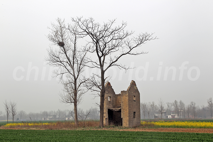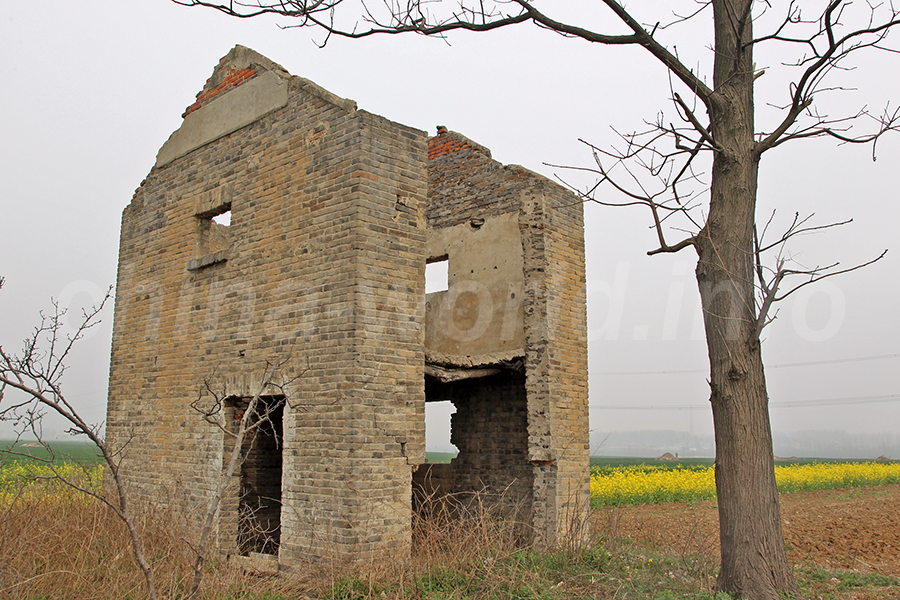 閣というイメージから、小高い山の上にでも建てられているのだろうと思っていたら、畑の中にあった。しかもすでにボロボロで、屋根も落ちている。でもなんとなくいい味をだしているな。中に入ってみるが、何もない。建物の前や横あたりには、石碑が立てられていたような跡もある。ただ徐庶を特定させるようなものは何もなかった。地元の人民たちは徐庶閣のことをちゃんと覚えているようで、40歳以上の人なら以前の状態だったかを知っているようだ。石碑を石橋の材料にしてしまい、石碑を運んだ人民が運んだ数日後に死んでしまったとか。まあ、どこまで本当かどうか分からないけれどもね。