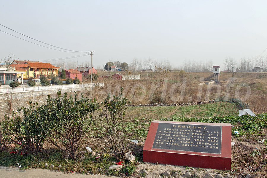 呂蒙城、現在は碑文があるのみ。後方は丁奉を祭った靖江王廟。