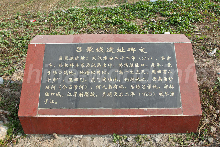 漢建安二十二年(西暦217年)、魯粛が没する。孫権は魯粛の代わりとして呂蒙を漢昌太守とし、陸口に駐屯させる。そして呂蒙は陸口に城を築く。東は陸水に接し、北は長江、西と南は護城河(現在の玉帯河)に囲まれていた。後に呂蒙城と呼ばれるようになり、また陸口城とも呼ばれた。江岸が崩れたことが原因で、明天啟二年(西暦1622年)には、城が完全に河に沈んだとされる。