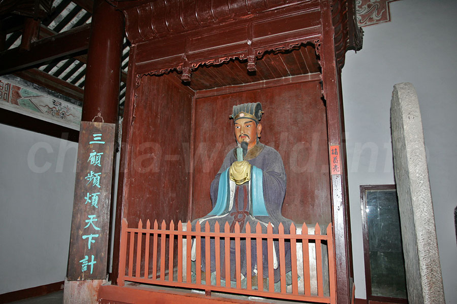 白帝廟に併設された武侯祠で、規模はかなり小さい。 内部には、孔明像が2体祭られている。 「漢代明良」、こちらは劉備像。 張飛と関羽の像も。 基本情報 【訪問時期】2001年8月30日 / 2005年10月31日 【関連人物】諸葛亮 【文物保護】– ちょこっと解説 探訪後記 関連遺址 新陽諸葛武侯祠[ 云霄 ] 南陽武侯祠[ 南陽 ] 黄陵廟武侯祠[ 宜昌 ] 隆中武侯祠[ 襄阳 ] 沔城諸葛武侯祠[ 仙桃 ] 石鼓書院武侯祠[ 衡阳 ] 翠屏武侯祠[ 阳朔 ] 成都武侯祠[ 成都 ] 清渓武侯祠[ 汉源 ] 通海武侯祠[ 通海 ] 保山武侯祠[ 保山 ] 諸葛山武侯祠[ 宝鸡 ] 陝南武侯祠[ 勉县 ] 五泉山武侯祠[ 兰州 ] 木門道武侯祠[ 天水 ] 祁山武侯祠[ 礼县 ] 位置情報 在野の士であるあなたはこの位置情報を閲覧できません。仕官申請しますか。 投稿情報【カテゴリ】重慶市 奉節県【 タグ 】諸葛亮【公開範囲】校尉 都督 大将軍 丞相【掲載日時】2018年2月12日 10:12【更新日時】2019年4月7日 19:53 いいね! 389