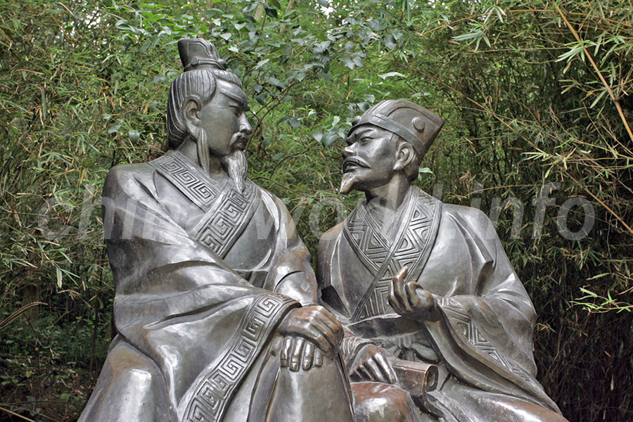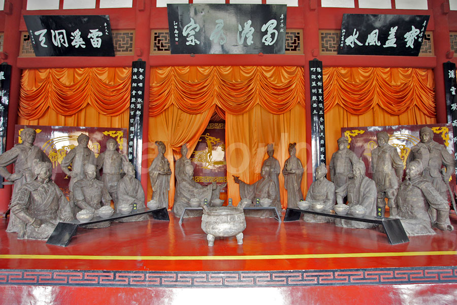 涪城会館内部。涪城会を再現しており、劉備と劉璋をはじめ両軍諸将の像が並んでいる。 再建された富楽堂。この中に涪城会館がある。 涪城会を表現したレリーフ。 劉備と龐統の像。龐統が劉備に三策を伝える。 蜀漢四英像。蒋琬、諸葛亮、董允、費禕の像が並ぶ。 五虎上将像。黄忠、馬超、関羽、張飛、趙雲の像が並ぶ。 桃園三結義像。関羽、劉備、張飛の像。 魚水君臣像。諸葛亮と劉備の像。 基本情報 【訪問時期】2002年7月28日 / 2003年1月27日 / 2009年6月15日 【関連人物】劉備 劉璋 【文物保護】– ちょこっと解説 探訪後記 位置情報 在野の士であるあなたはこの位置情報を閲覧できません。仕官申請しますか。 投稿情報【カテゴリ】四川省 綿陽市【 タグ 】劉備 劉璋【公開範囲】校尉 都督 大将軍 丞相【掲載日時】2017年12月3日 20:15【更新日時】2019年1月13日 14:33 いいね! 326