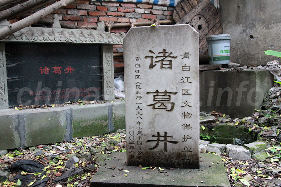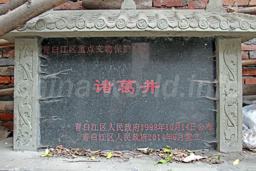 現在も残されている三国時代の井戸。諸葛亮が使用したとされる。 文物碑: 1998年10月14日公布 青白江区重点文物保護単位「諸葛井」 基本情報 【訪問時期】2018年5月4日 【関連人物】諸葛亮 【文物保護】1998年10月14日公布 青白江区重点文物保護単位「諸葛井」 ちょこっと解説 探訪後記 この諸葛井、ネットではちらほらと画像が出てくるし、場所もほぼピンポイントで書かれている。しかし訪れてみると、見当たらない。地元民に聞き込み開始。「そんなものはもうなくなった」とか「そこにあるけれど、中に入られないから」などと言われる。話を総括してみると、存在はしているようだ。目の前にある緑の扉。この扉が開けば、その先には諸葛井がある。しかしその扉が簡単に開くわけもなく。さすがに諦めようかと思い、立ち去ろうとした刹那、扉の前に自転車が停まった。そして人民オバチャンが扉を開けようとしてるではないか。もうこのチャンスを逃してはならない。すぐさま声をかけ、中を見せて貰う。ありましたよ諸葛井。ここは壁と扉ができて、民家の一部となってしまっているのだ。 関連遺址 諸葛井[ 益阳 ] 孔明井[ 宜宾 ] 位置情報 在野の士であるあなたはこの位置情報を閲覧できません。仕官申請しますか。 投稿情報【カテゴリ】四川省 成都市【 タグ 】諸葛亮【公開範囲】校尉 都督 大将軍 丞相【掲載日時】2018年5月29日 20:52【更新日時】2020年6月3日 20:06 いいね! 329